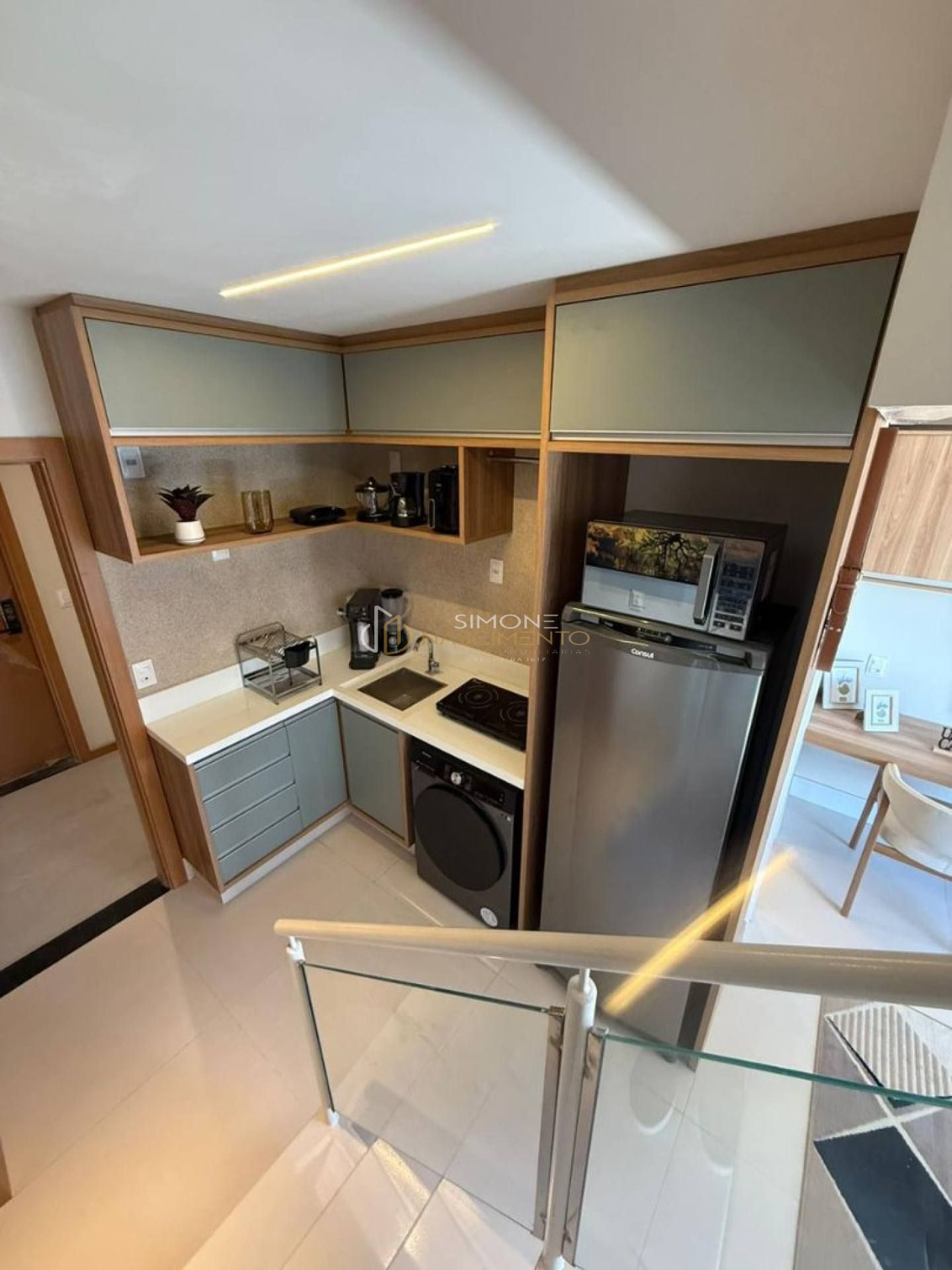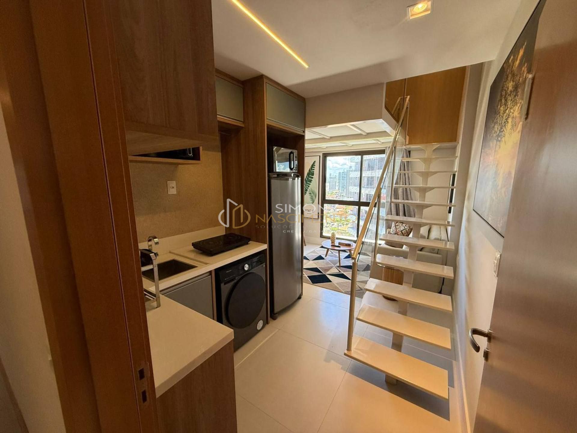Studio com mezanino, sala, cozinha e banheiro social. Imóvel finamente decorado com piso porcelanato, iluminação em LED, armários planejados, ar condicionado, blindex, andar alto, nascente e ventilado. Vendido com porteira fechada. IPTU 300, 32m², Cond 500 com piscina borda infinita, academia, Espaço Business, Coworking, Salas de Reunião, bicicletário, terraço, auditório, Mini comercio sustentável, estacionamento rotativo e portaria 24h. Localizado atrás do Trade Center. Aceita financiamento. Possibilidade de aluguel mensal por R$3.500,00.