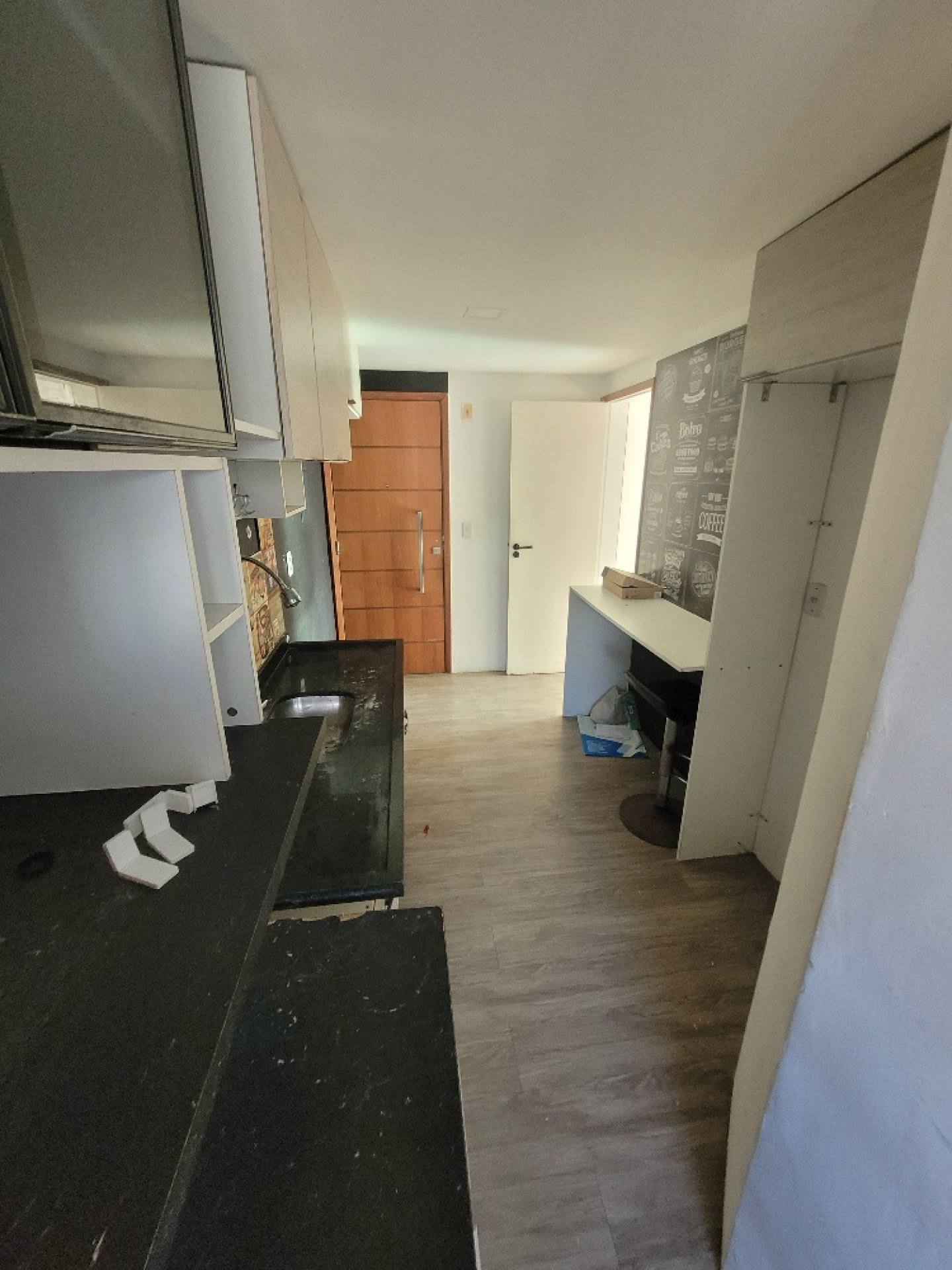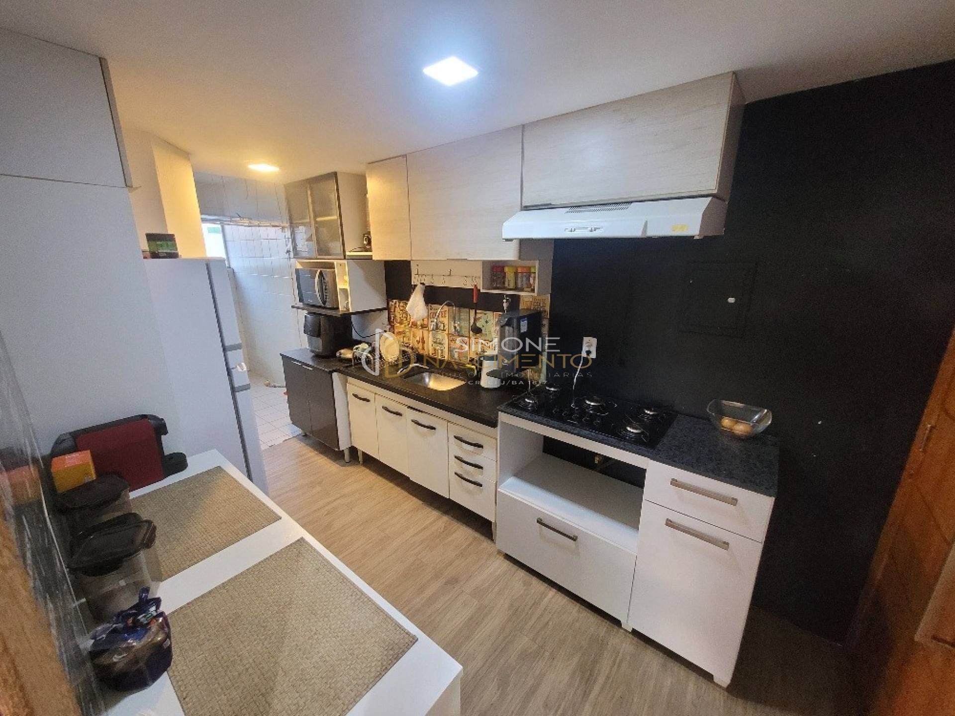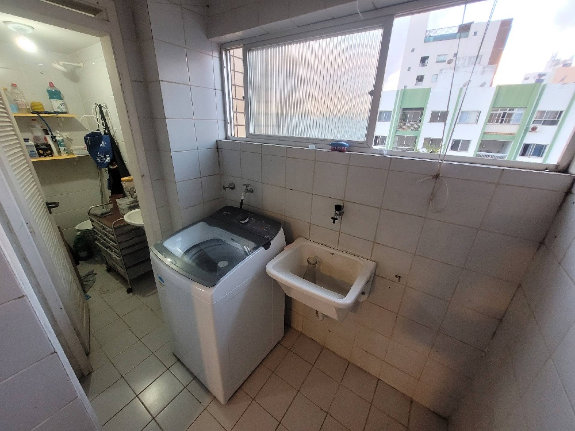 Apartamento com 2/4, sala, varanda, cozinha, área de serviço, banheiro social e dependência completa.