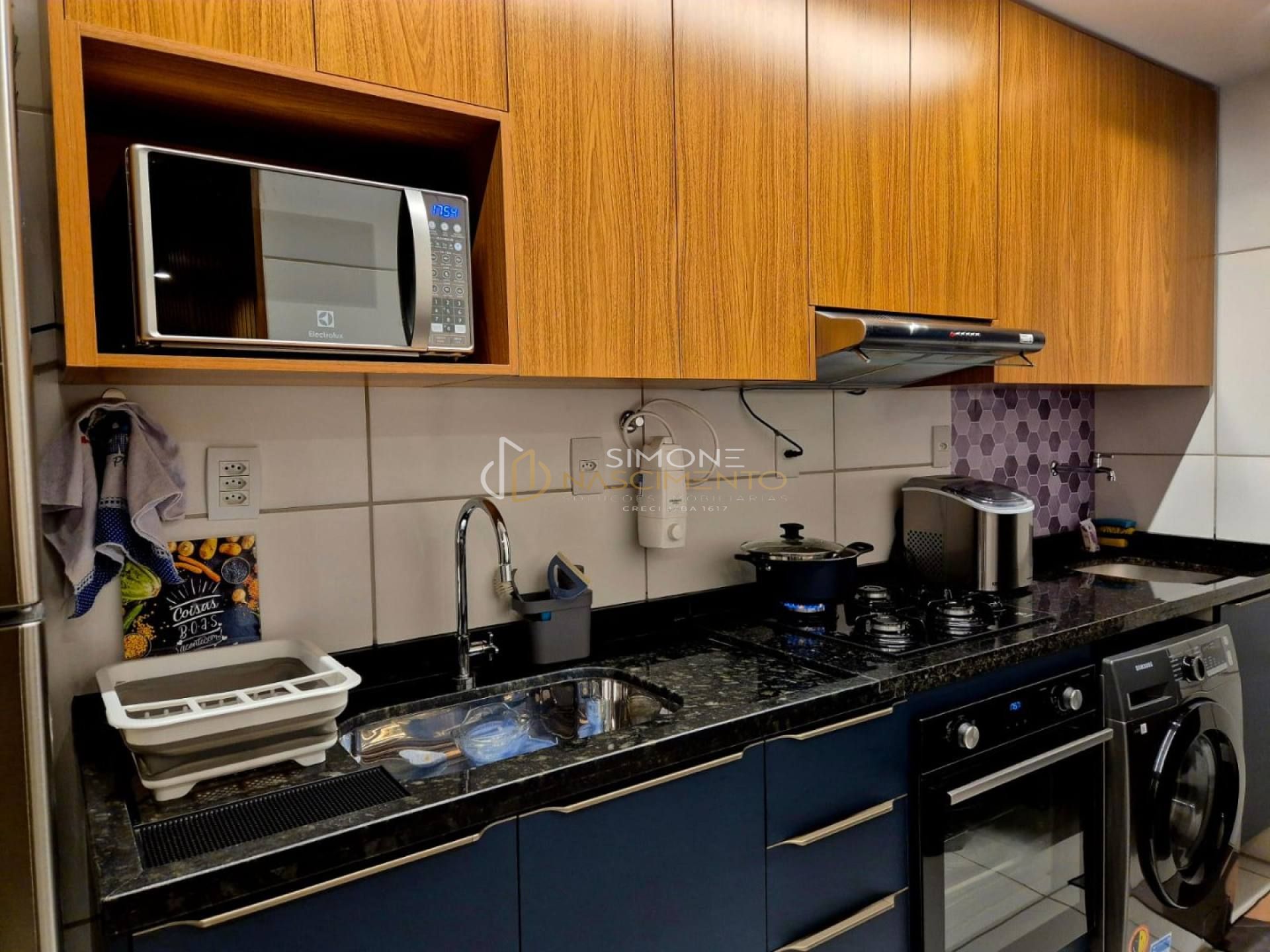 cozinha, banheiro e varanda ampla, sendo vendido totalmente mobiliado (porteira
