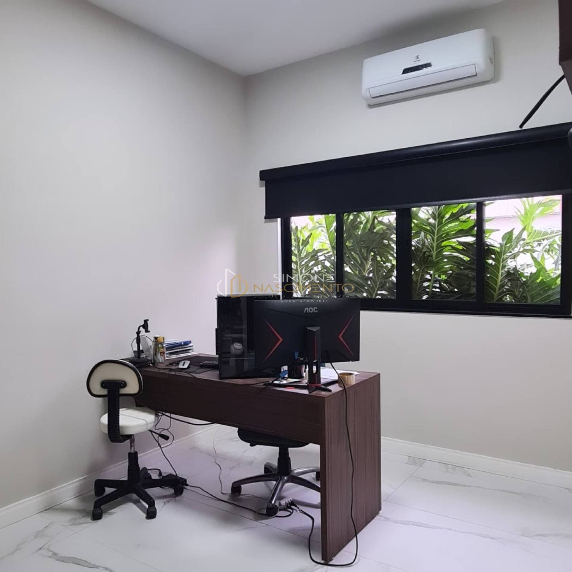1 quarto + 1 banheiro (usado como home office) com ar-condicionado e cortina roll on blackout