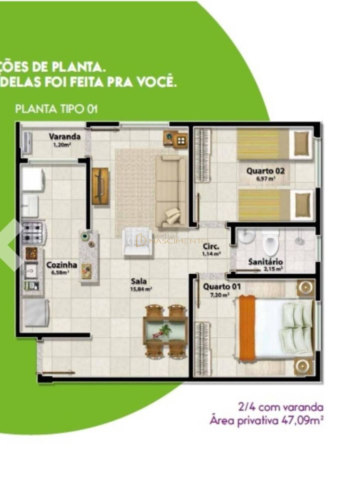 Área Privativa: 49.00m²