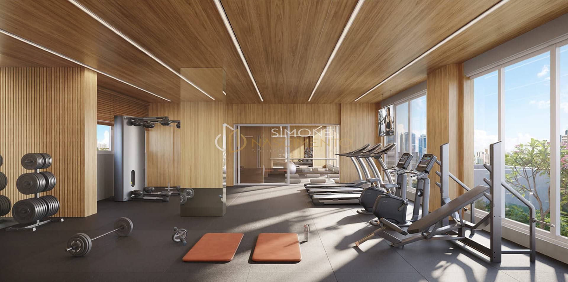 Sala Fitness e espaço multifuncional, piscinas