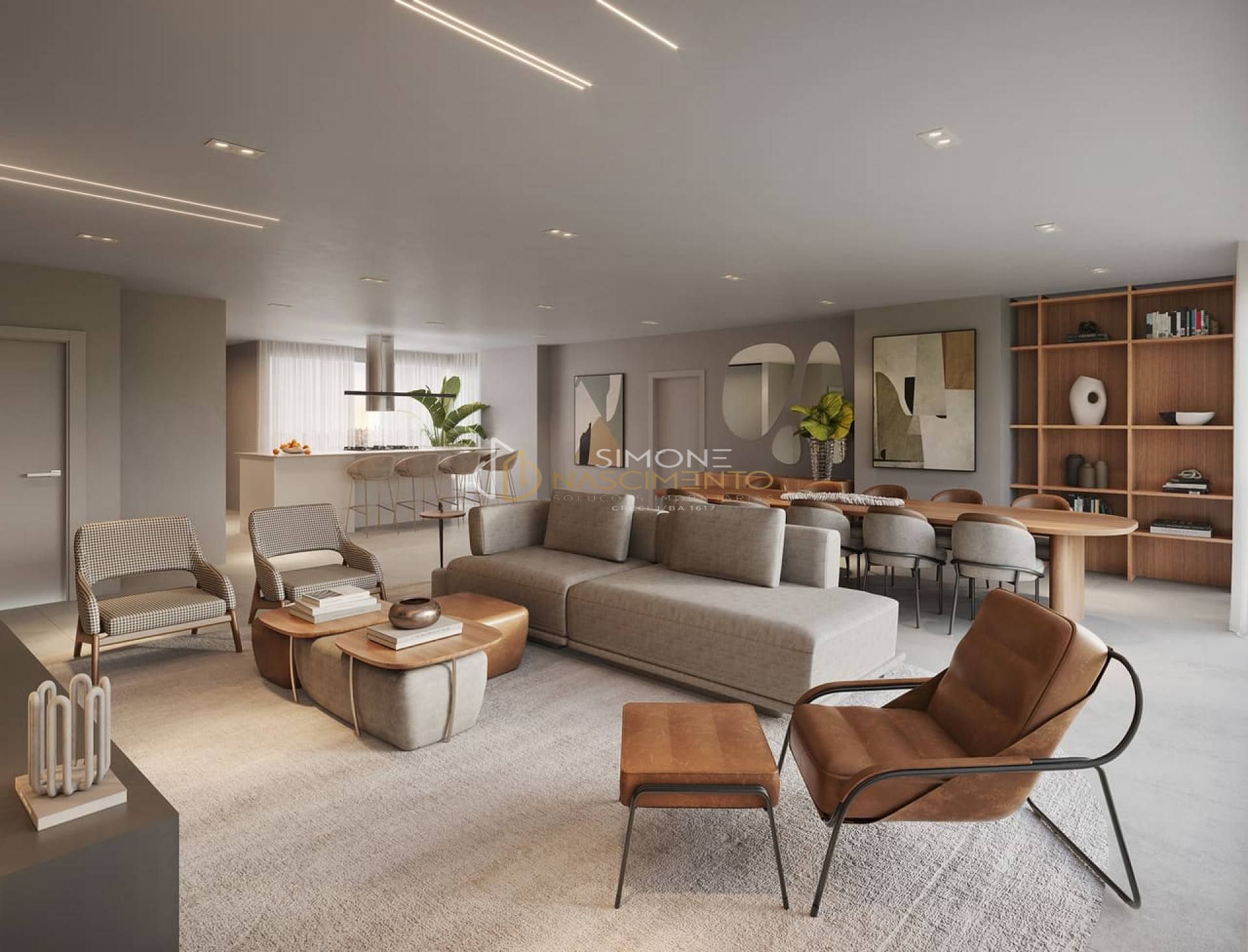 Living com sala de estar e jantar